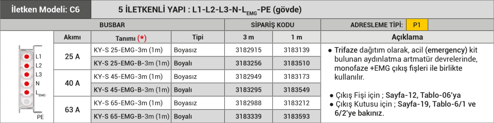 E-Line KY-S 25A: Aydınlatma Busbarı Teknik Dökümanlar